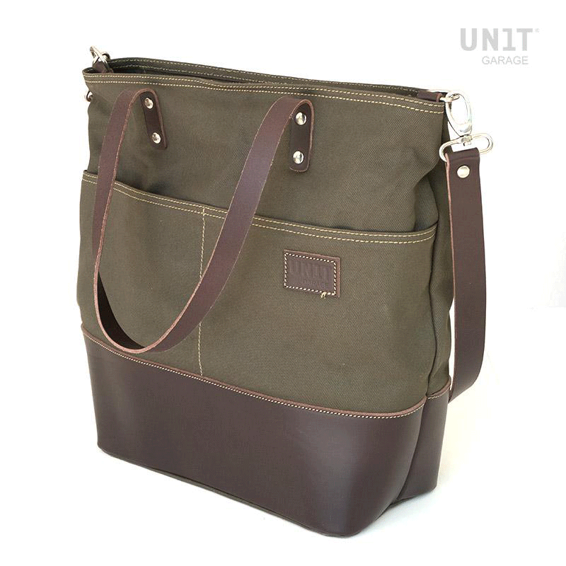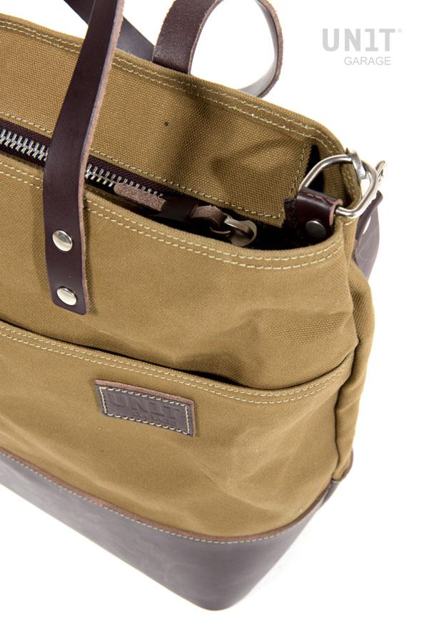 Sac fabriqué à la main en Italie en robuste coton imperméable de qualité supérieure; traité avec de la cire qui le rend résistant à l'eau.