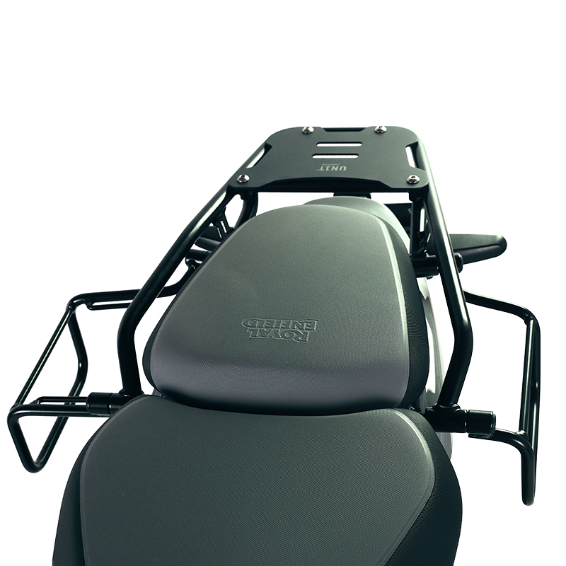 Conçu sur le cadre Royal Enfield, il s'intègre parfaitement au reste de la moto et est réalisé en acier traité avec une finition poudre époxy noir mat