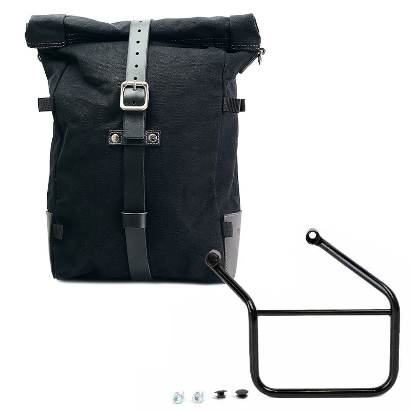 1. Sacoche latérale Pure extensible de 10 à 14 Litres. Fabriquée à la main en Italie dans un coton ciré, robuste et de haute qualité.