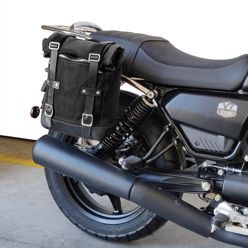 Sacoche latérale Scram extensible de 22 à 30 litres fabriquée à la main en Italie en coton imperméable robuste et de première qualité.