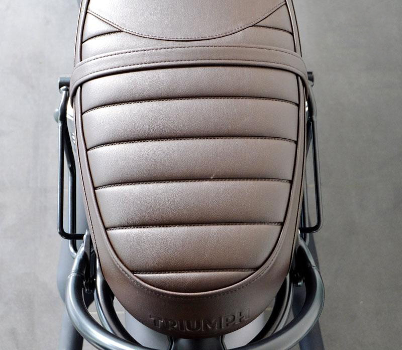 Conçu sur les châssis Triumph Bonneville T100 et T120, il s'intègre parfaitement au reste de la moto. Prêt à accueillir notre système d'attache rapide, beau et minimal même lorsque le sac n'est pas monté. Il peut être utilisé confortablement avec le passager à bord.