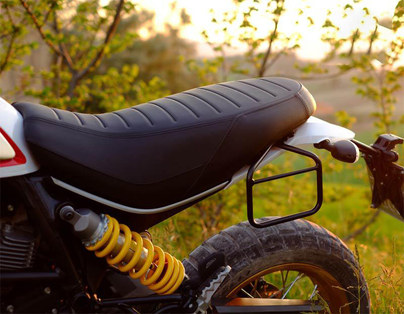 Conçu sur le cadre Ducati Scrambler, il s'intègre parfaitement avec le reste de la moto. Prêt à accueillir notre système de fixation rapide, beau et minimal, même lorsque le sac n'est pas monté. Il peut être utilisé confortablement avec le passager à bord.