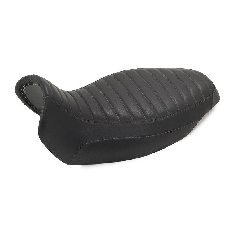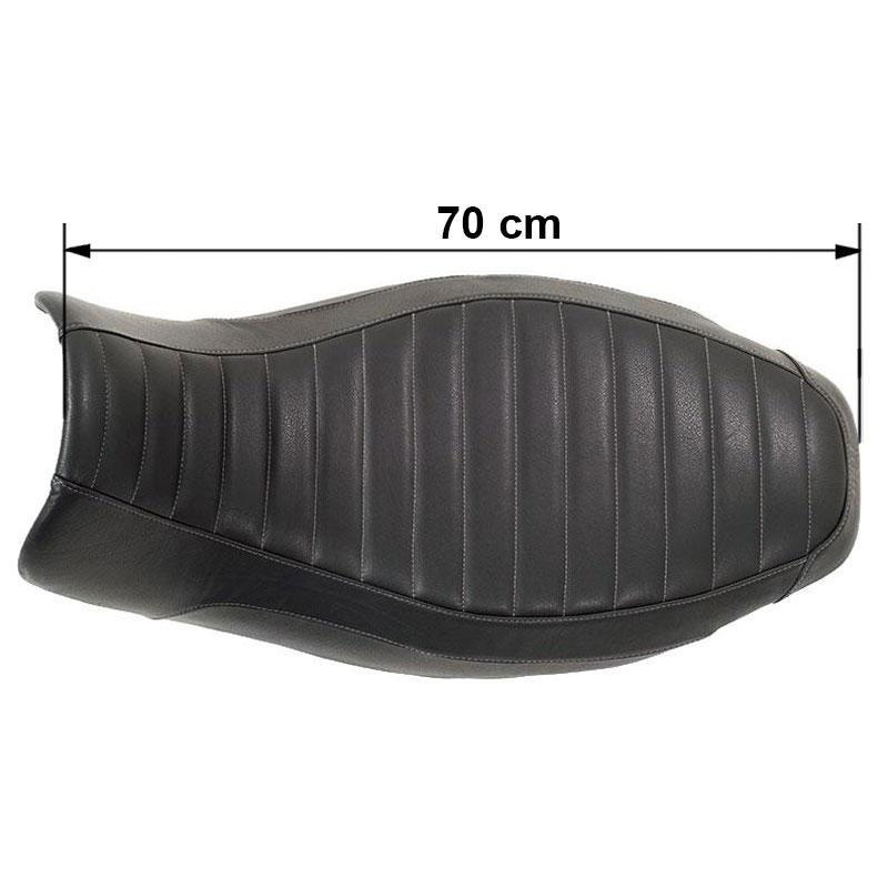 Selle longue de notre réalisation en cuir véritable. Grâce à la forme particulière de notre selle, plus étroite et plus arrondie que celle d'origine, les jambes sont moins écartées permettant un meilleur maintien des pieds au sol. Nous avons sélectionné les meilleures tanneries et choisi des cuirs d'origine italienne et non traités au pentachlorophénol. Selle en cuir véritable, couture à la main avec du fil de coton.