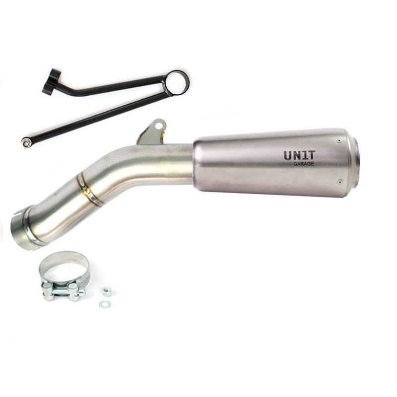 avec l'échappement complet, nous fournissons également notre code de support 2023. Il est monté avec le cadre passager.