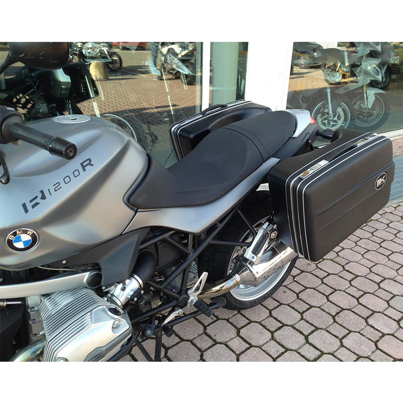 Ces cadres permettent l'assemblage du mythique Krauser sur votre R1200 R dans sa configuration d'origine. Fabriqué en acier traité avec une finition en poudre haute résistance en noir Ils sont fournis avec un tuyau de jonction arrière et des vis. NB Ils sont faciles à assembler et sont robustes pour les longs trajets.