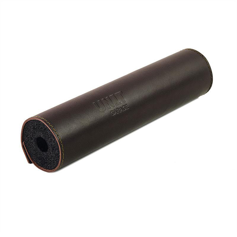 Pare-chocs en cuir marron, il se monte très facilement sur toute traverse de guidon et protège le visage en cas de chute. Longueur 24 cm de diamètre 6 cm.