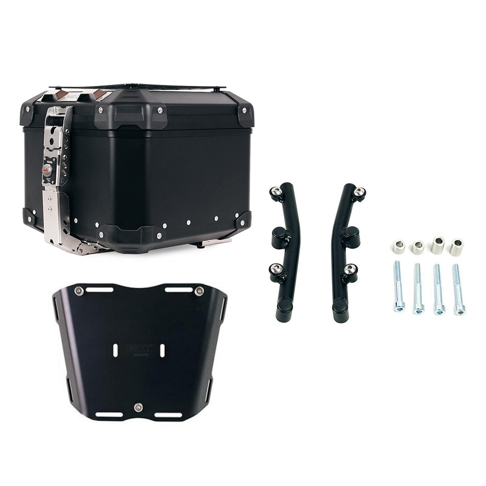 Fabriqué en aluminium anodisé de 5 mm d'épaisseur, il permet le montage de notre top case code ATL3 sur les porte-bagages de différents modèles. Ce produit ne comprend aucun système de fixation à la moto qui doit être acheté séparément, tel que le code A9.