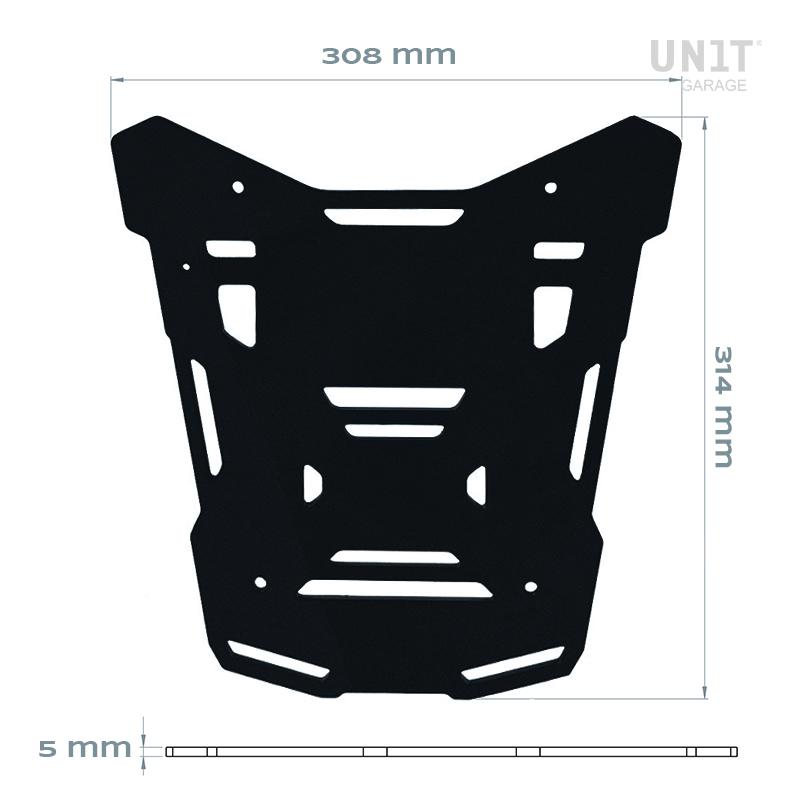 Fabriqué en aluminium anodisé noir de 5 mm d'épaisseur, il permet le montage de notre top case code: ATL3_BL sur le porte-bagages d'origine BMW R1300GS ADV. Complet avec vis et entretoises en acier inoxydable, il peut être assemblé en quelques minutes.