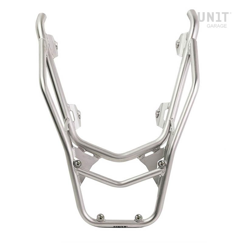 Elle complète la partie arrière et est dotée de poignées passager confortables. Robuste et pratique, elle peut accueillir la platine U108 et la platine AL3 pour le top case en aluminium grâce à ses 4 fixations préinstallées. Elle est également idéale pour optimiser l'espace avec des sacoches souples grâce à la platine AL13. Cette version bénéficie d'une finition époxy en poudre noir mat haute résistance.