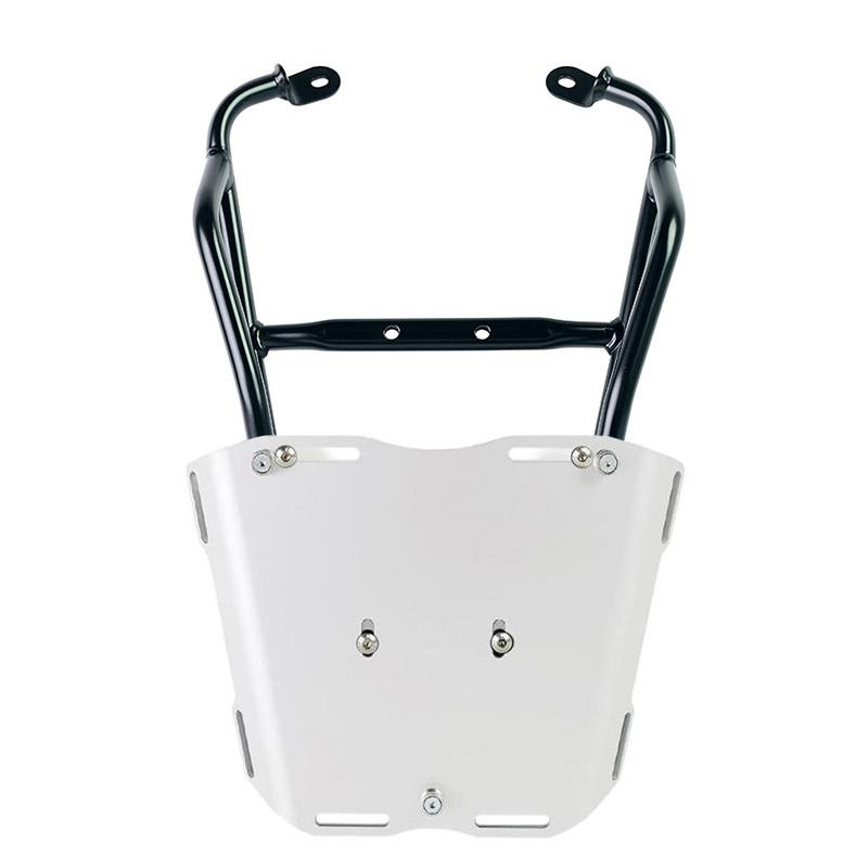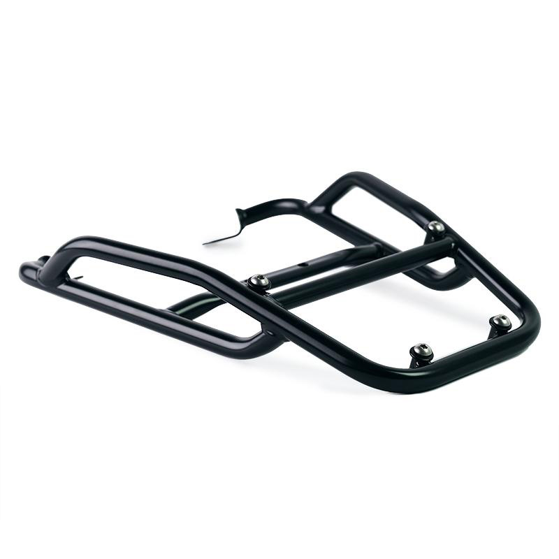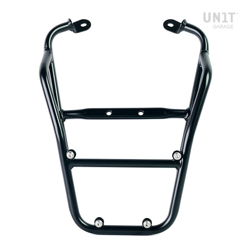 Porte-bagages en tube d'acier finition poudre époxy noir mat. Il complète la partie arrière et est équipé de poignées pour le passager. Il se fixe très simplement au cadre de la moto sur les 4 points de fixation fournis par Fantic Caballero 125-250-500. Robuste et pratique, il complète l'esthétique de la moto.