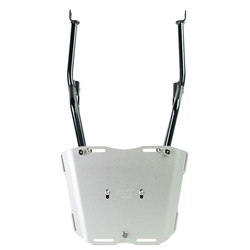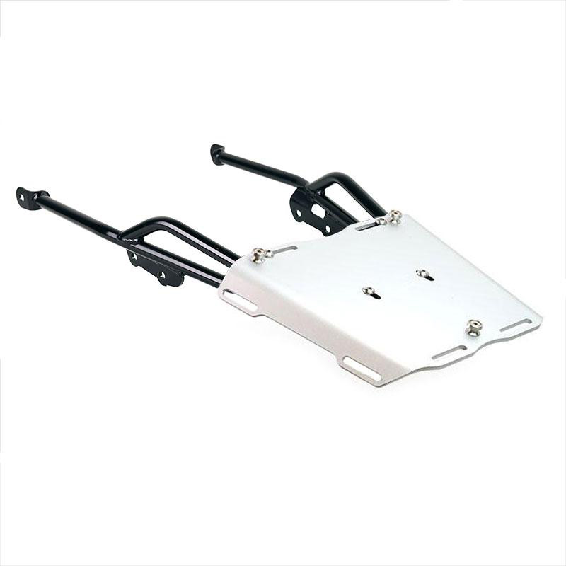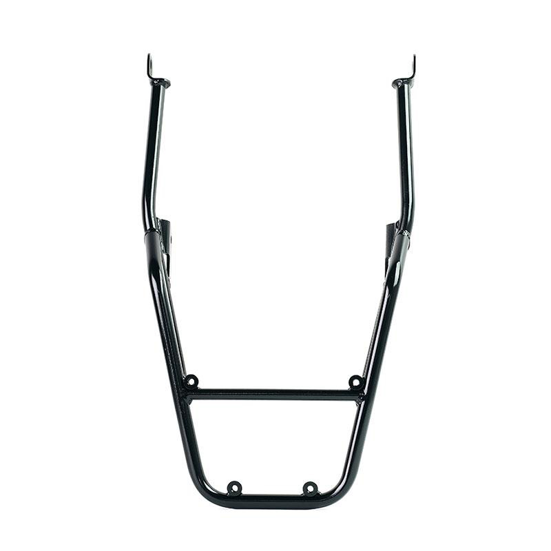 Porte-bagages en tube d'acier avec finition époxy noir mat. Complétant la partie arrière et équipé de poignées pour le passager, il se fixe très facilement sur la moto d'origine. Robuste et pratique, il est équipé de 4 bagues sur sa surface d'appui pour la fixation de la plaque AL5.