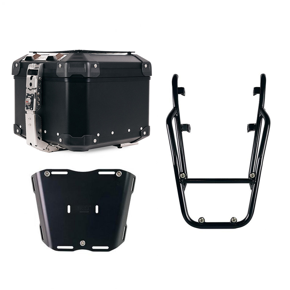 Il complète la partie arrière et est équipé de poignées confortables pour le passager. Robuste et pratique, il peut accueillir à la fois la plaque à code : U108 et la plaque à code : AL3 pour le top case en aluminium grâce aux 4 fixations fournies. Excellent également pour avoir plus de surface de chargement pour les sacs souples en montant la plaque Code : AL13 Dans cette version, il est proposé avec une finition en poudre époxy haute résistance en noir mat.