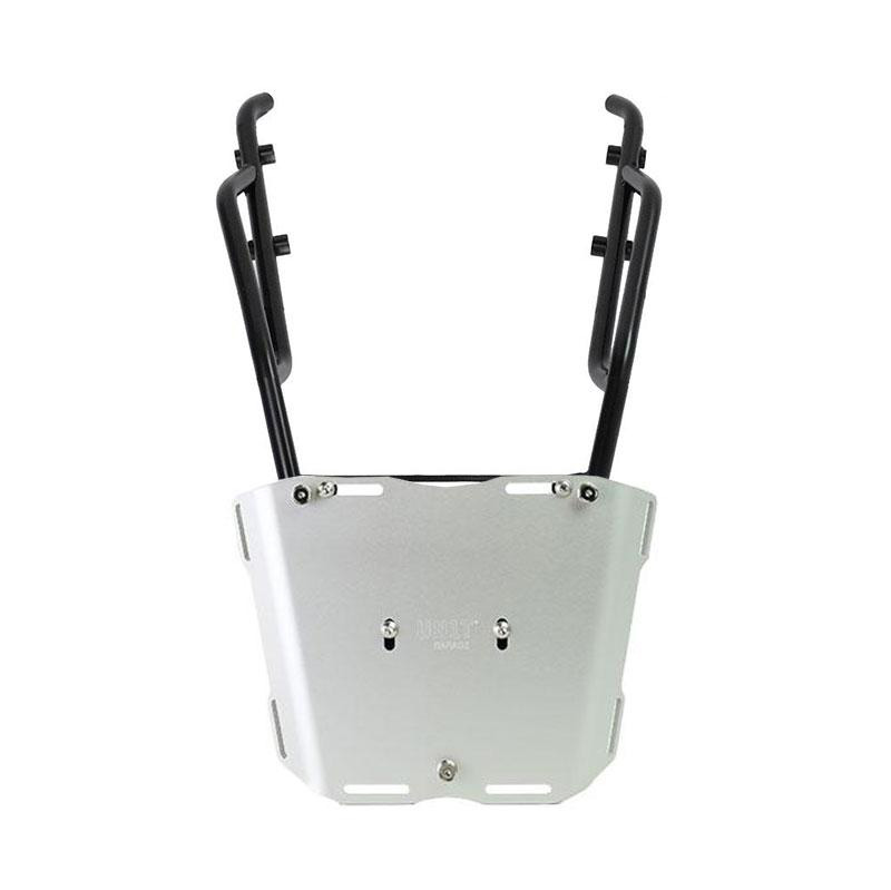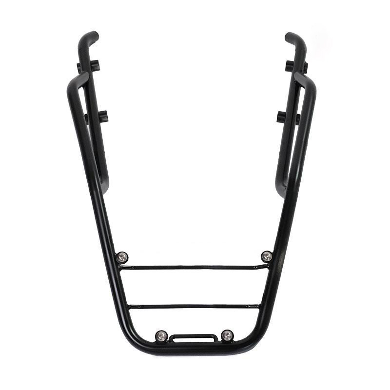 Porte-bagages en tube d'acier finition poudre époxy noir mat. Il complète la partie arrière et est équipé de poignées pour le passager, il se fixe très simplement sur la moto d'origine grâce aux vis fournies. Robuste et pratique, il est équipé de 4 douilles sur la surface d'appui pour la fixation de la plaque AL5.