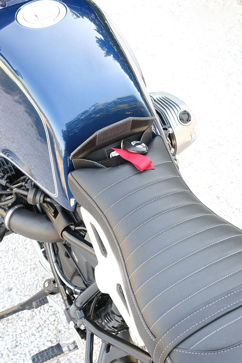 La poche de rangement pour objets permet un ajustement parfait entre nos réservoirs pour les modèles nineT et toutes les selles montées avec le réservoir original.