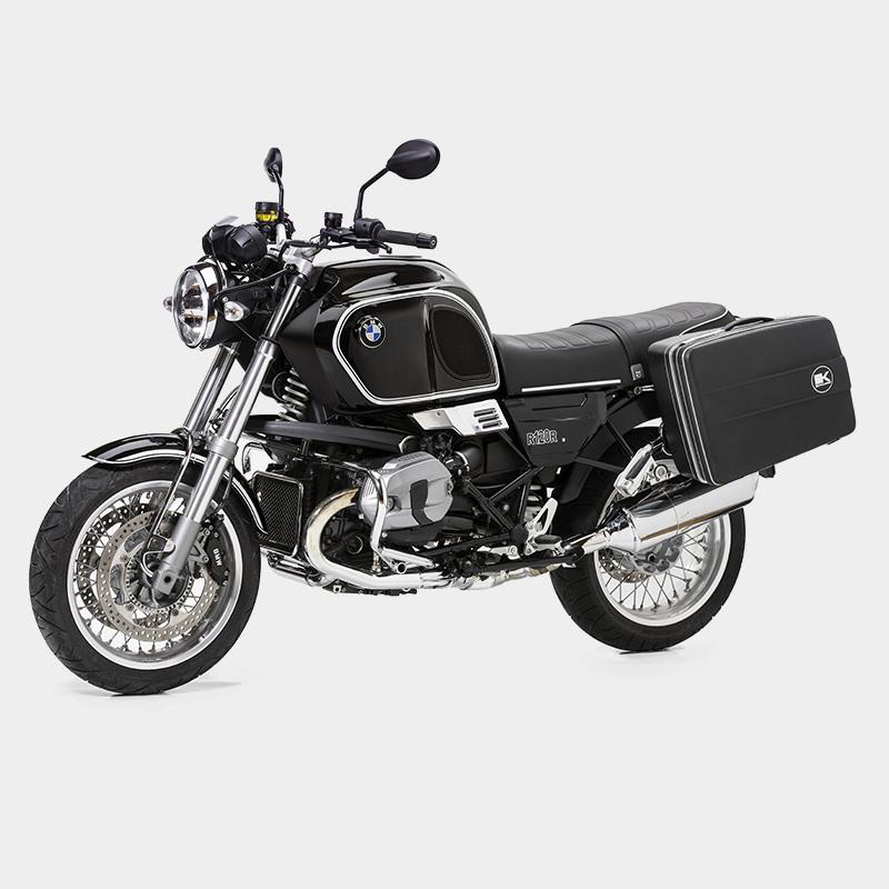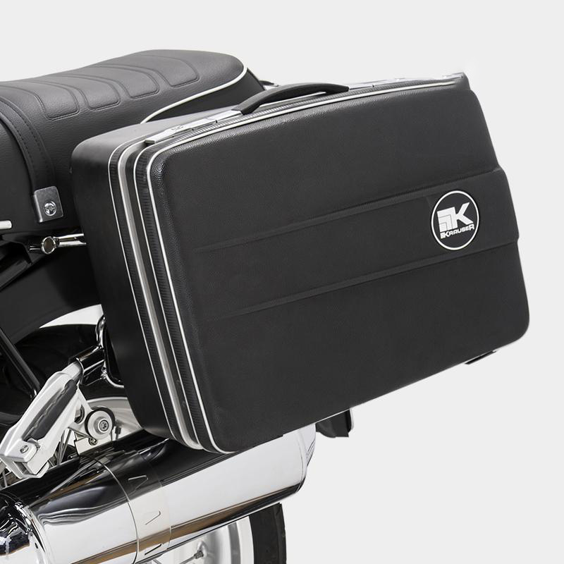 Paire de valises Krauser originales montables en achetant nos porte-bagages Cod. 1320. Adaptées aux longs trajets, avec une capacité de 35 litres et la certification TUV, elles confèrent à la moto un look vintage.